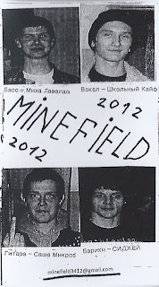 Ripping and unrelenting. Russia's MINEFIELD deliver a near perfect version of Y2K thrashcore, blazing through 6 songs in five fukkn minutes. Maybe you're too cool for this, maybe you outgrew this subgenre in your teens and now you listen to painful rehashes of RAMONES songs in the style of trite garage punk...and maybe you're a fool. The power of this shit cannot be denied, no matter how much your jeans cost or how good your haircut is. Dust off your circle pit, these riffs are going to make the place explode...when "Взаперти" kicks in after the drum roll intro? You know you've been thrashed, and you know you like it, the same way you feel when the guitar drops to a steady mosh pace at the start of "Сосчитаны и пронумерованы." From the always excellent Drunk With Power (or here if you don't speak Pусский). Put this shit on repeat...there's a RAW POWER cover too. Relentless.